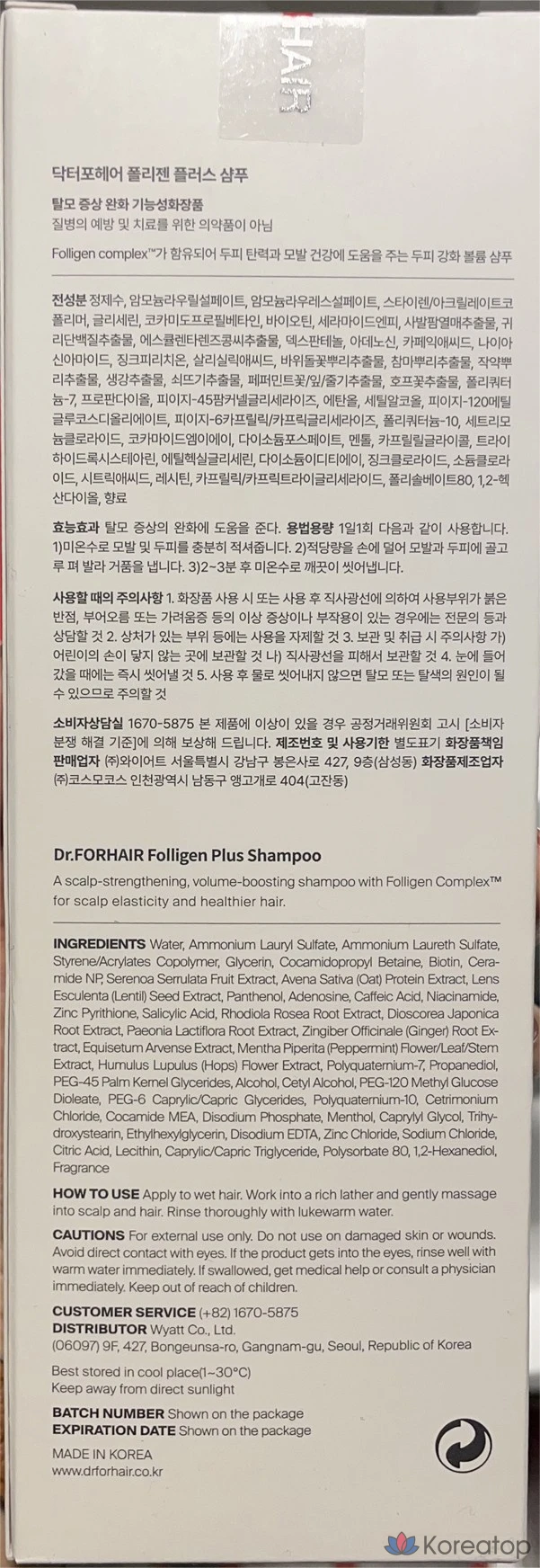 Шампунь Dr. For Hair Foligen Plus для облегчения выпадения волос, 500 мл + 100 мл, 1 флакон.