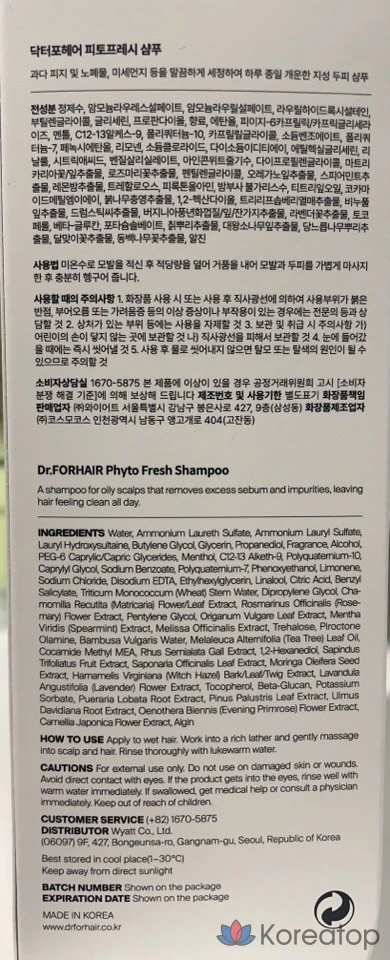 Шампунь Dr. For Hair Phyto Fresh для жирной кожи головы, 70 мл, 1 шт.