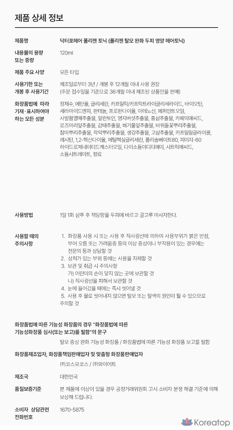 Тоник для волос Dr. For Hair Polligen, 120 мл, 1 флакон.