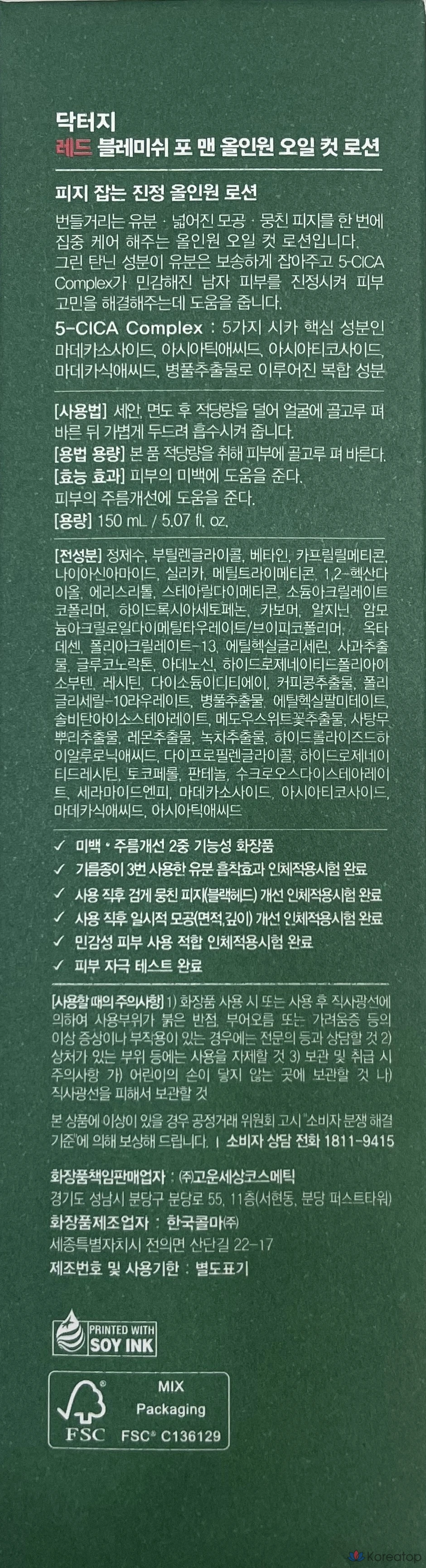 Dr.G Red Blemish for Men Oil Cut Lotion All-in-One, 150 мл, 1 шт.