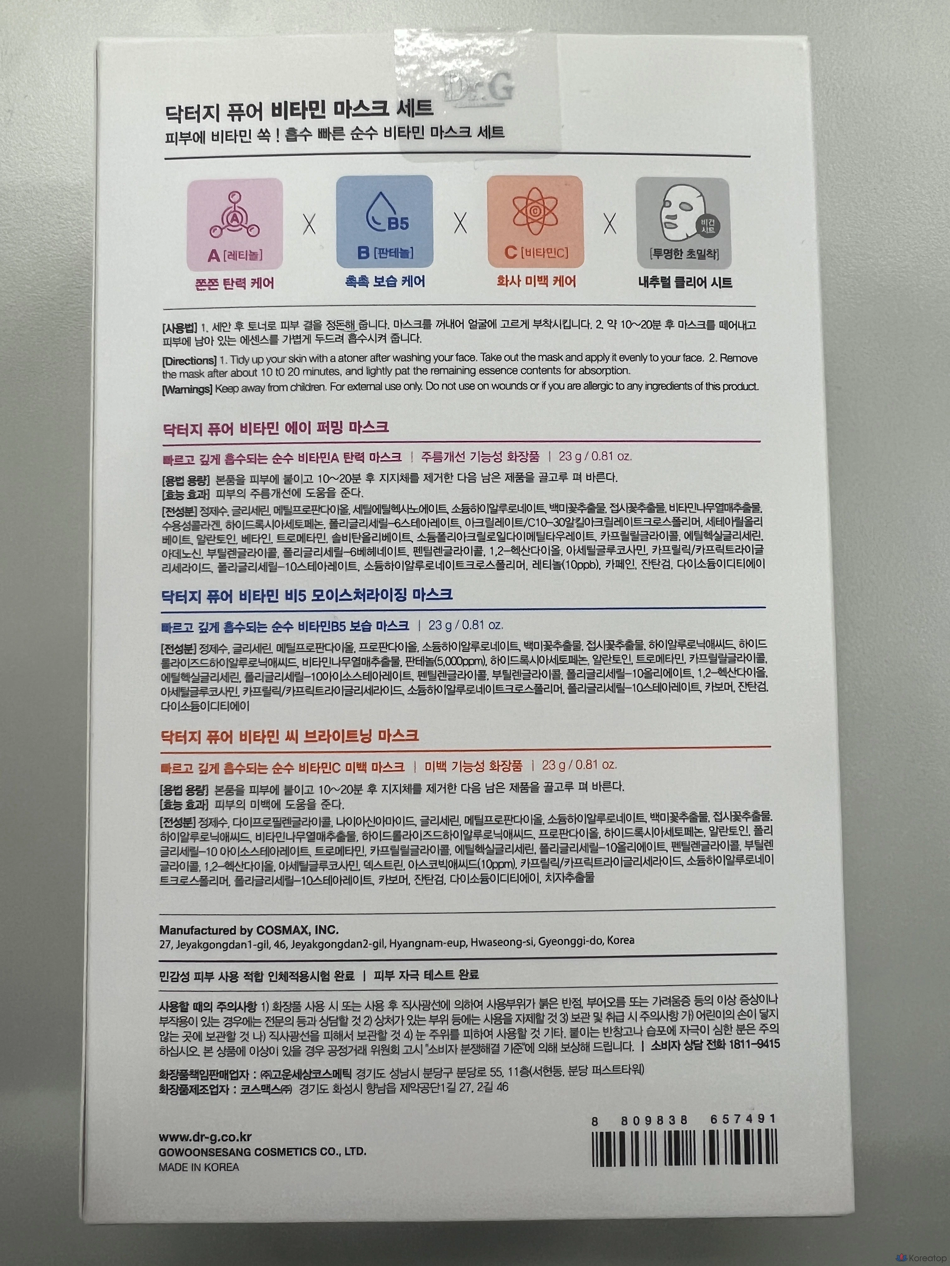 Набор масок Dr.G Pure Vitamin A Firming 4p + Vitamin B5 Moisturizing 4p + Vitamin C Brightening 4p, 1 шт.