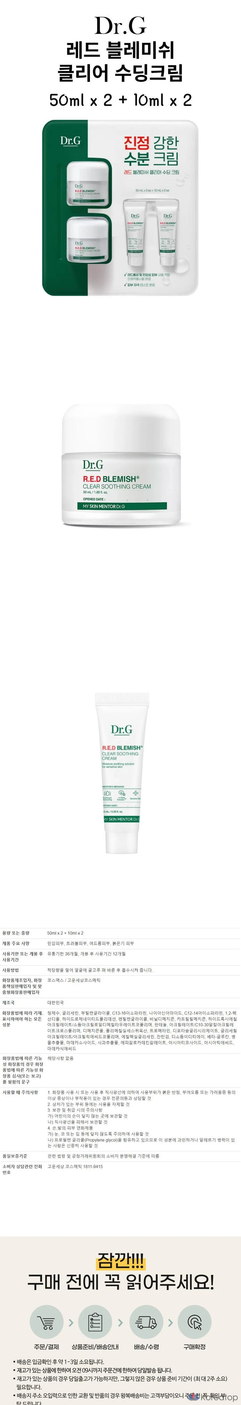 Успокаивающий крем Dr.G Red Blemish Clear 50 мл (2 шт.) + Успокаивающий увлажняющий крем Cica 10 мл (2 шт.), 50 мл × 1