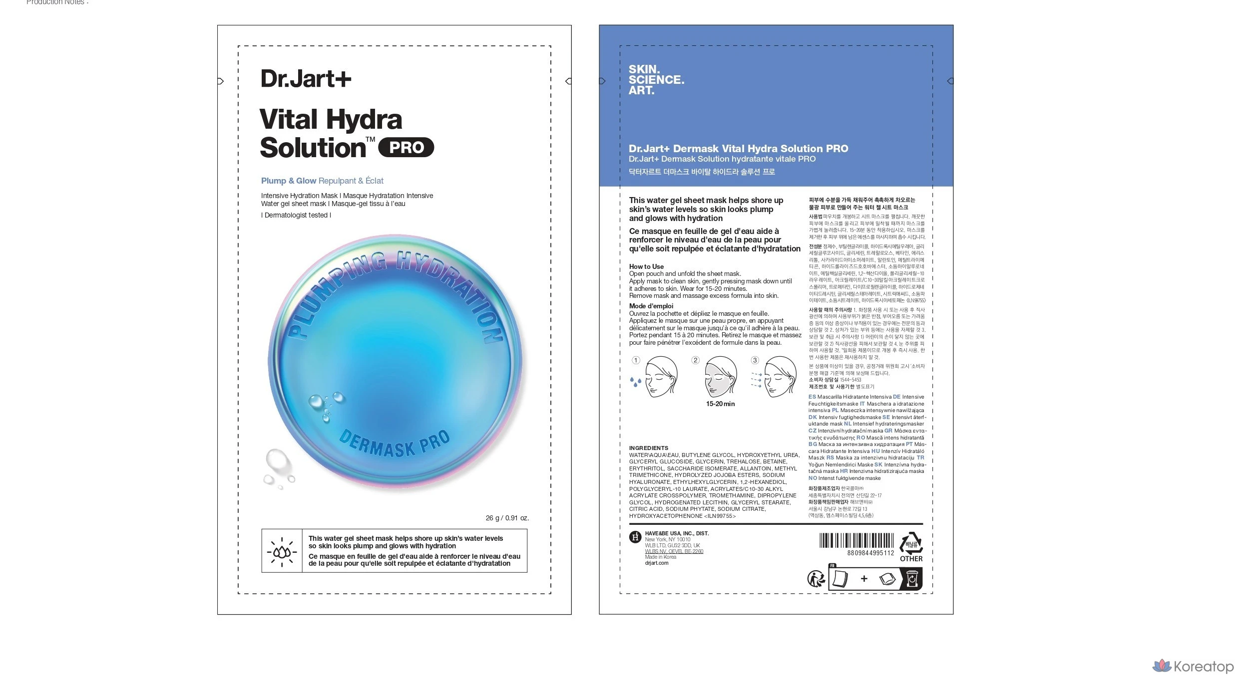 Dr. Jart+ Dermask Vital Hydra Solution Pro, 26 г, 1 упаковка, 1 шт.