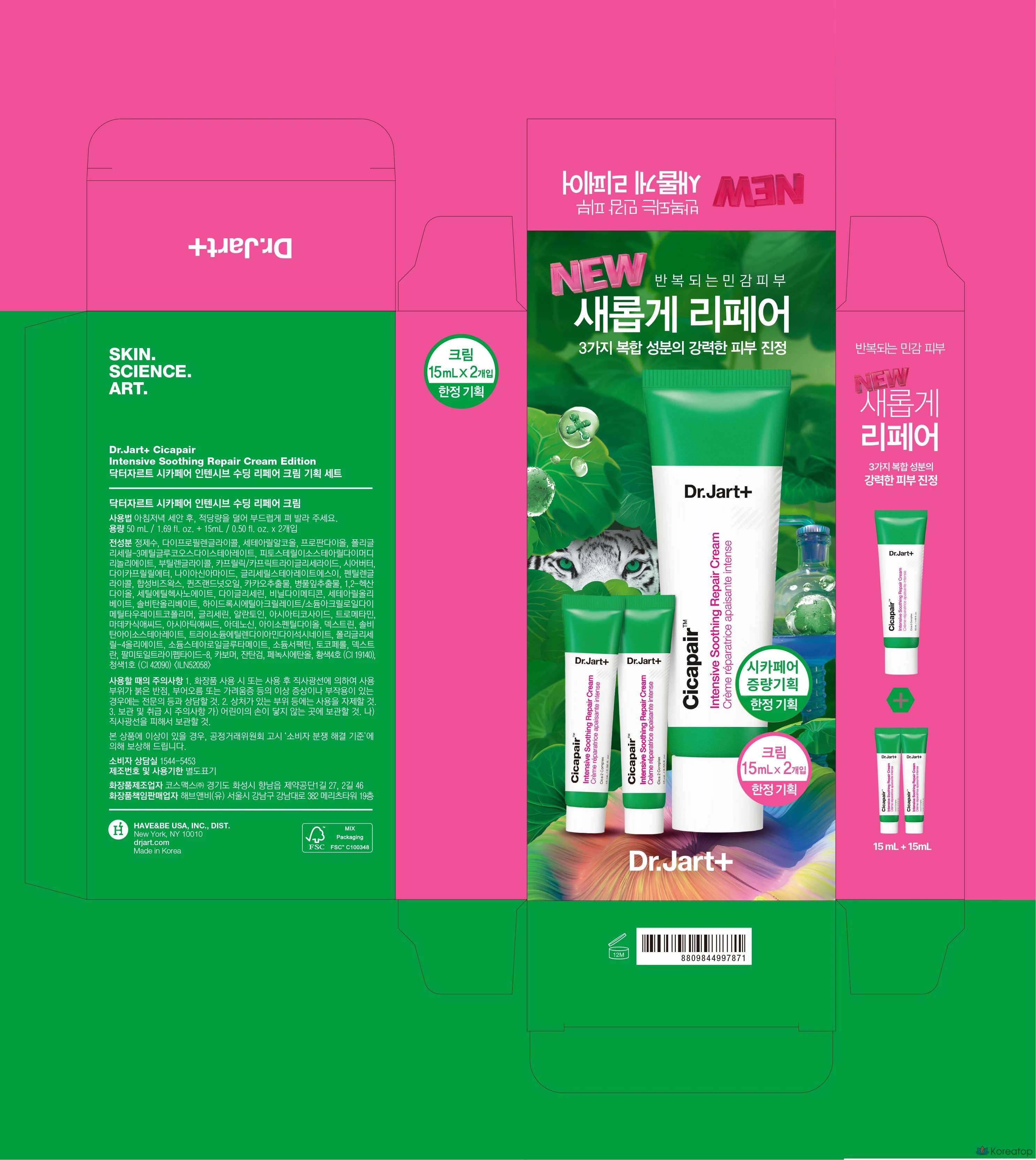 Интенсивный успокаивающий восстанавливающий крем Dr. Jart+ Cicapair, 50 мл + 15 мл, 2 шт., 1 набор