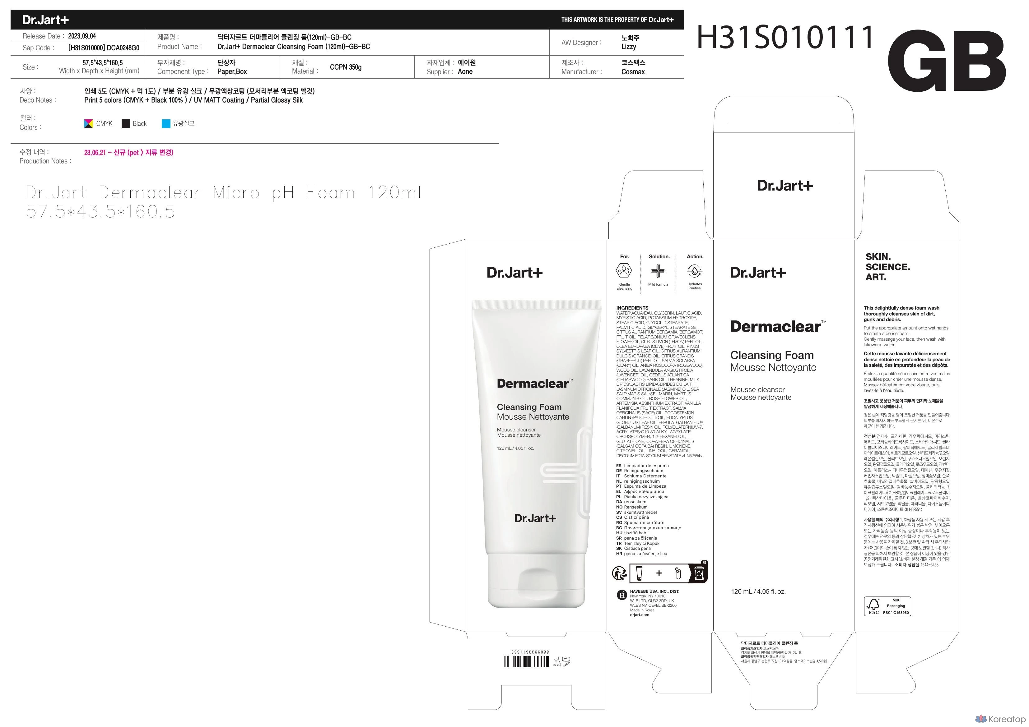 Очищающая пенка Dr. Jart+ Dermaclear, 120 мл, 1 шт.