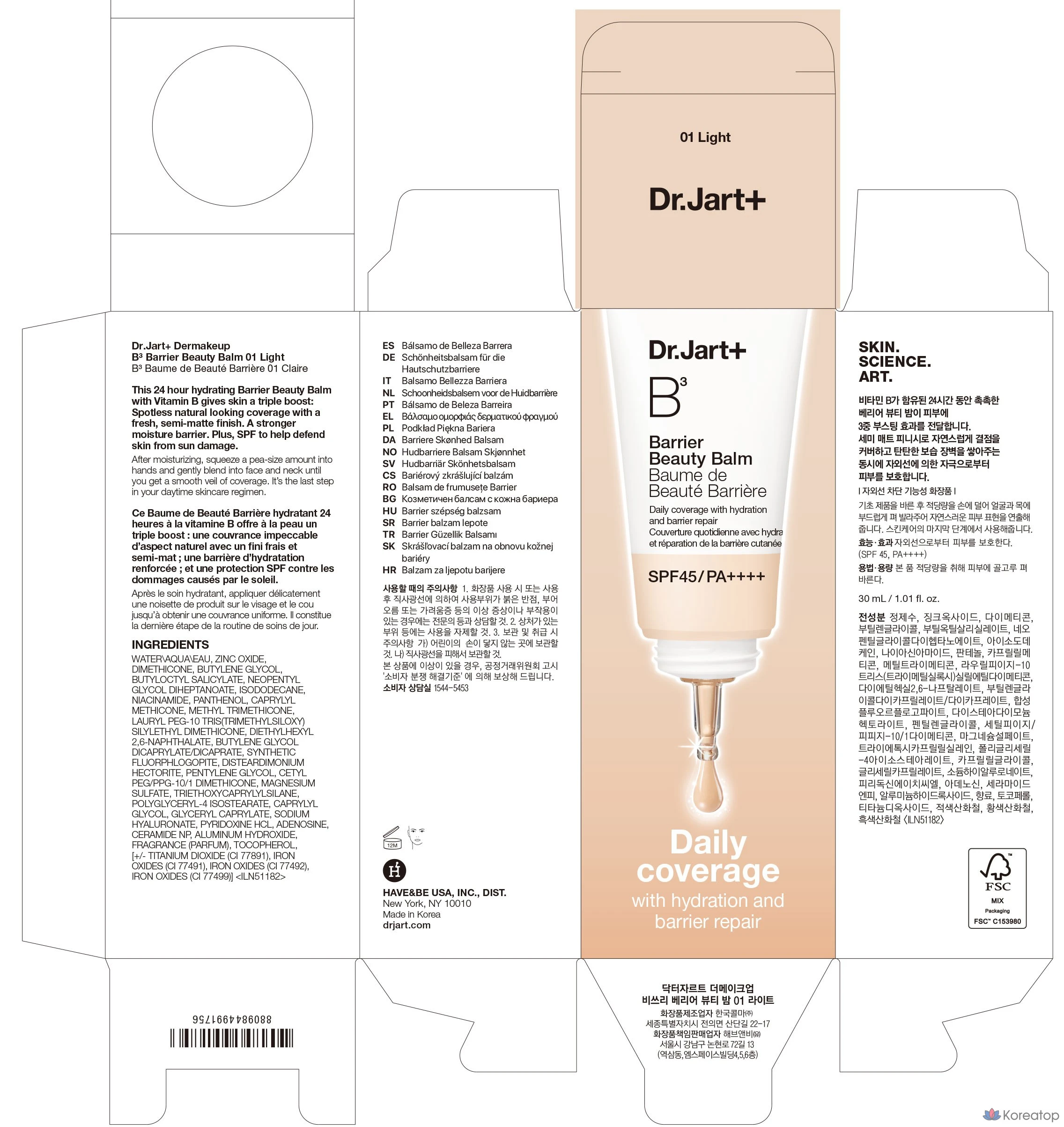 Бальзам для лица Dr. Jart+ The Makeup Barrier Beauty Balm (SFP45 PA++++) с 3 видами витамина B, 2 оттенка, Dr. Jart+, № 02 Medium, 30 мл, 1 шт.