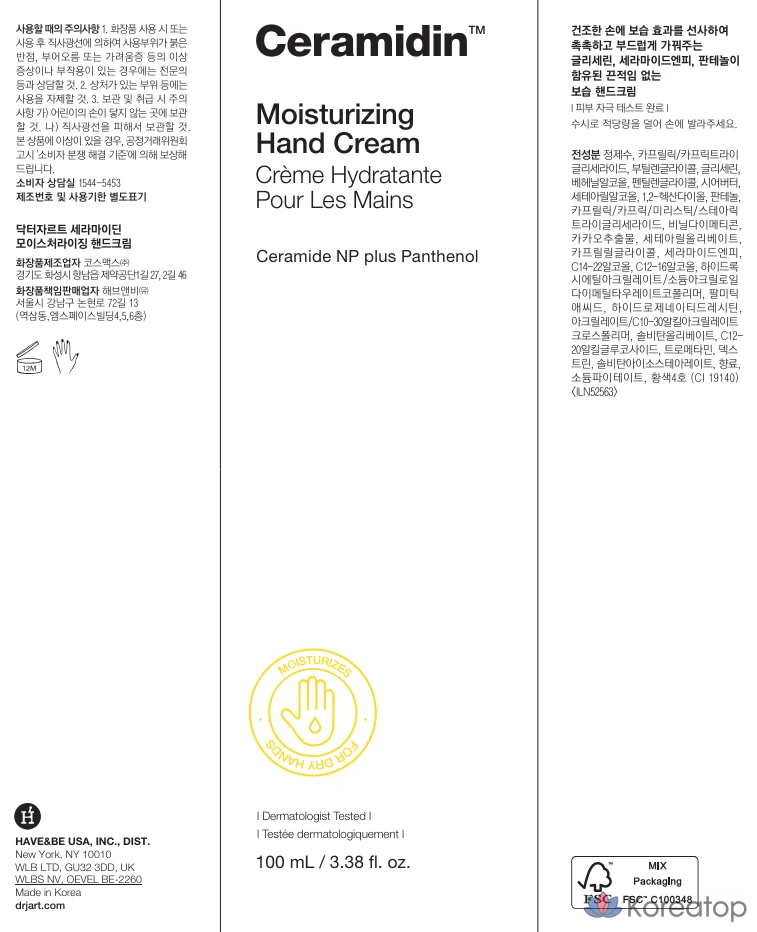 Увлажняющий крем для рук Dr. Jart+ Ceramidin, 100 мл, 1 шт.