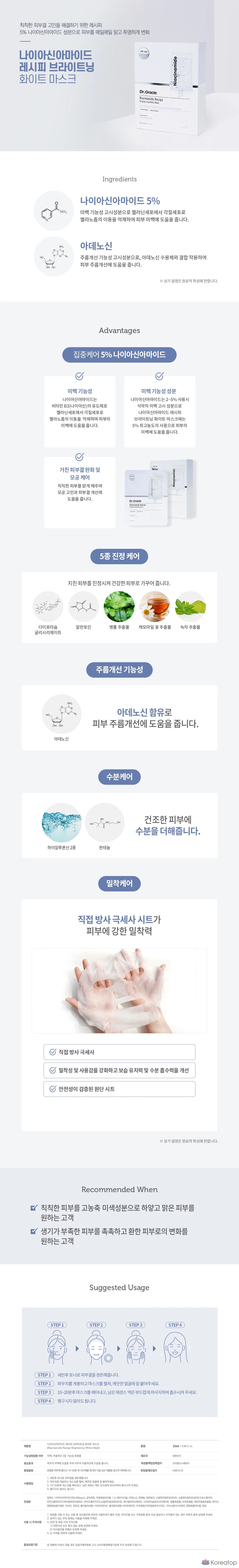 Осветляющая маска для лица Dr.Oracle Niacinamide Recipe Brightening White Mask Pack, 25 мл, 10 шт., 1 упаковка
