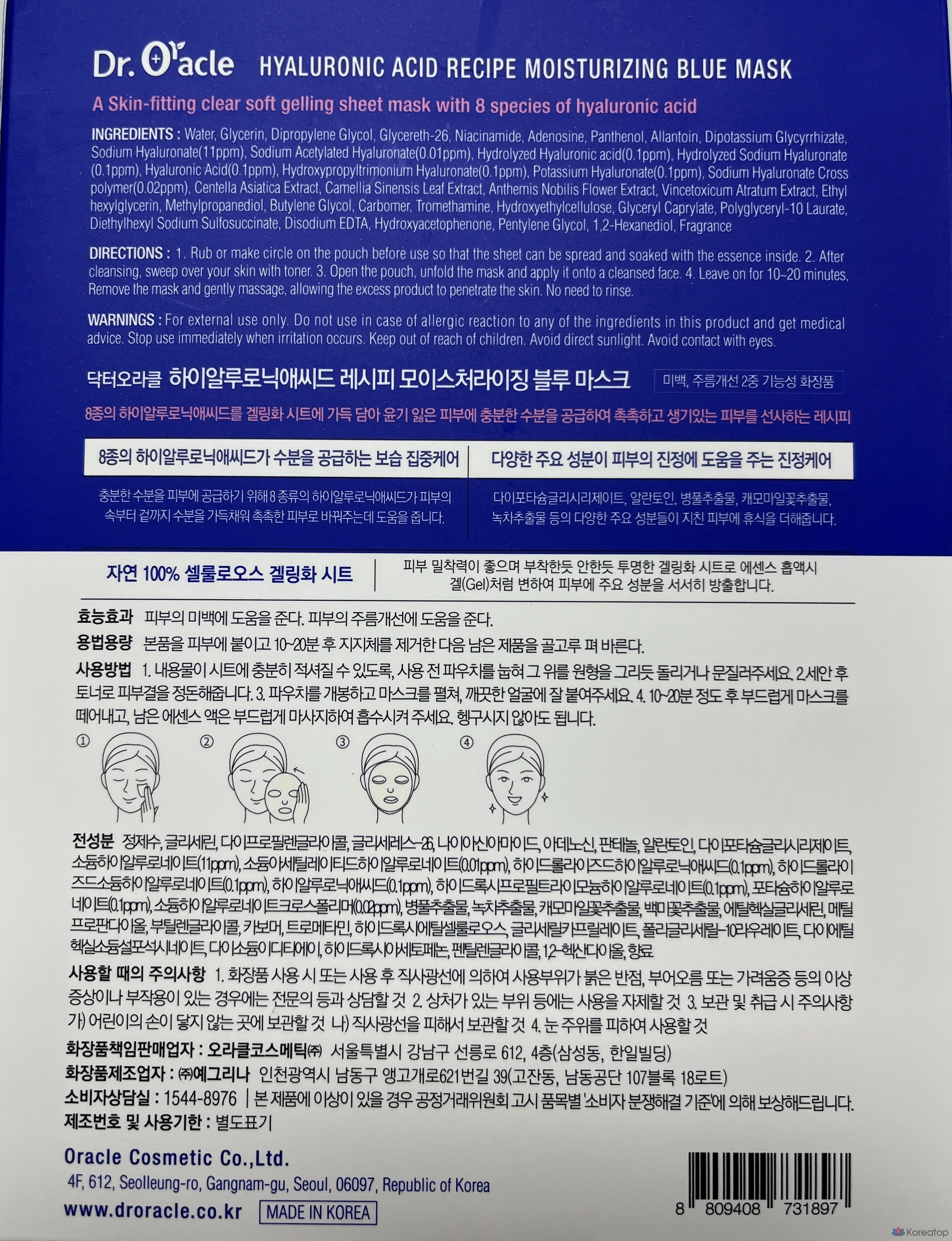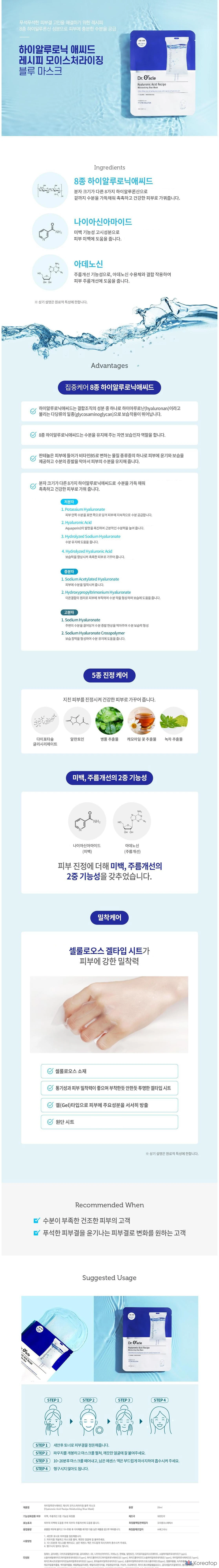 Синяя маска с гиалуроновой кислотой Dr.Oracle, 10 штук, 1 упаковка.