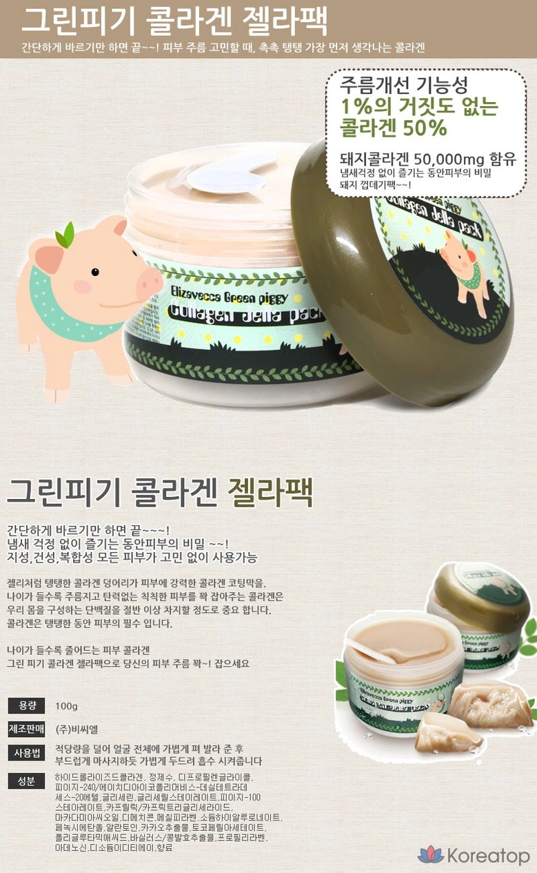 Набор тканевых масок Elizavecca Mask Pack Sheet, 1 шт., набор коллагеновых гелей Green Piggy Collagen Gel Pack.