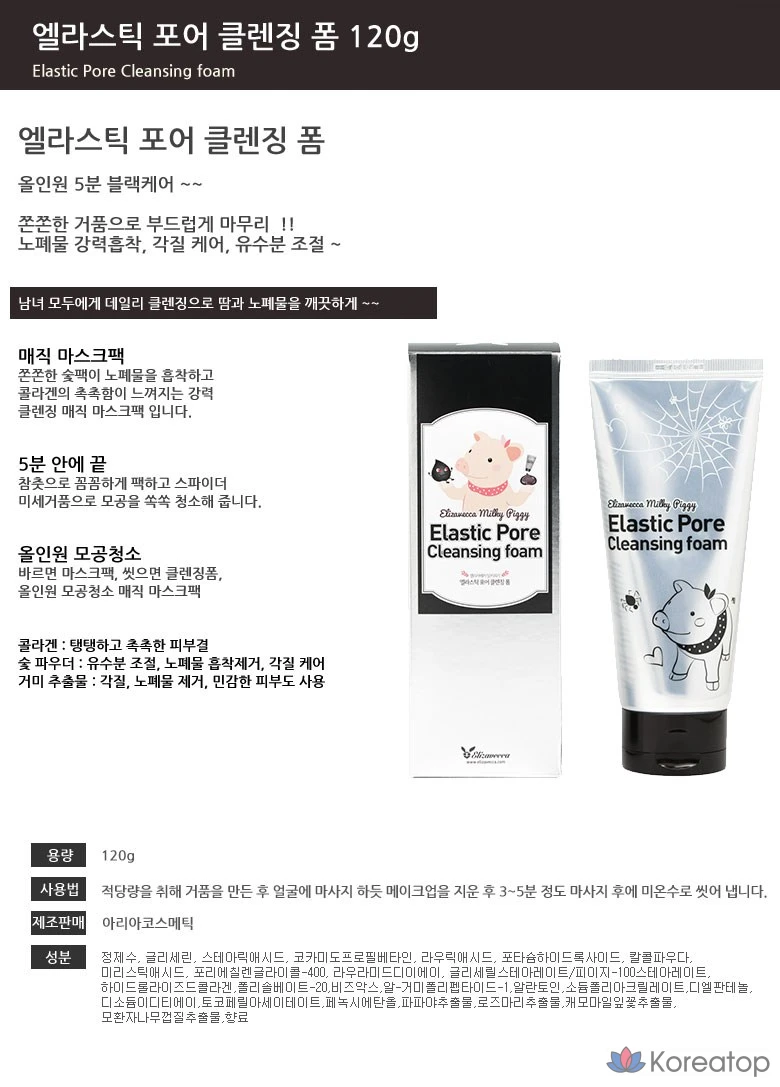 Очищающая пенка для лица Elizavecca Elastic Pore Cleansing Foam, 120 мл, 1 флакон, 120 г