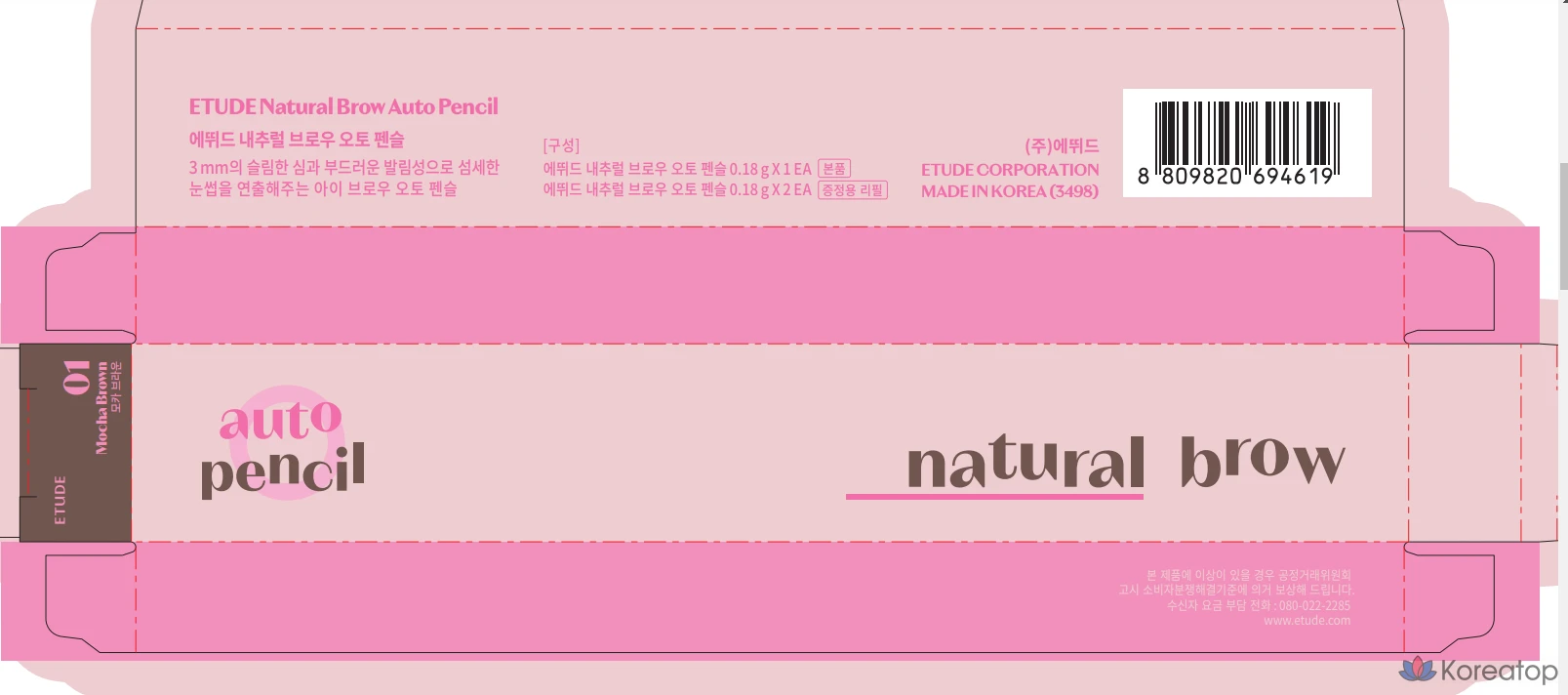 Автоматический карандаш для бровей Etude House Natural Brow Auto Pencil, 0,18 г, 2 сменных стержня, № 2, цвет «каменно-серый», 1 шт.