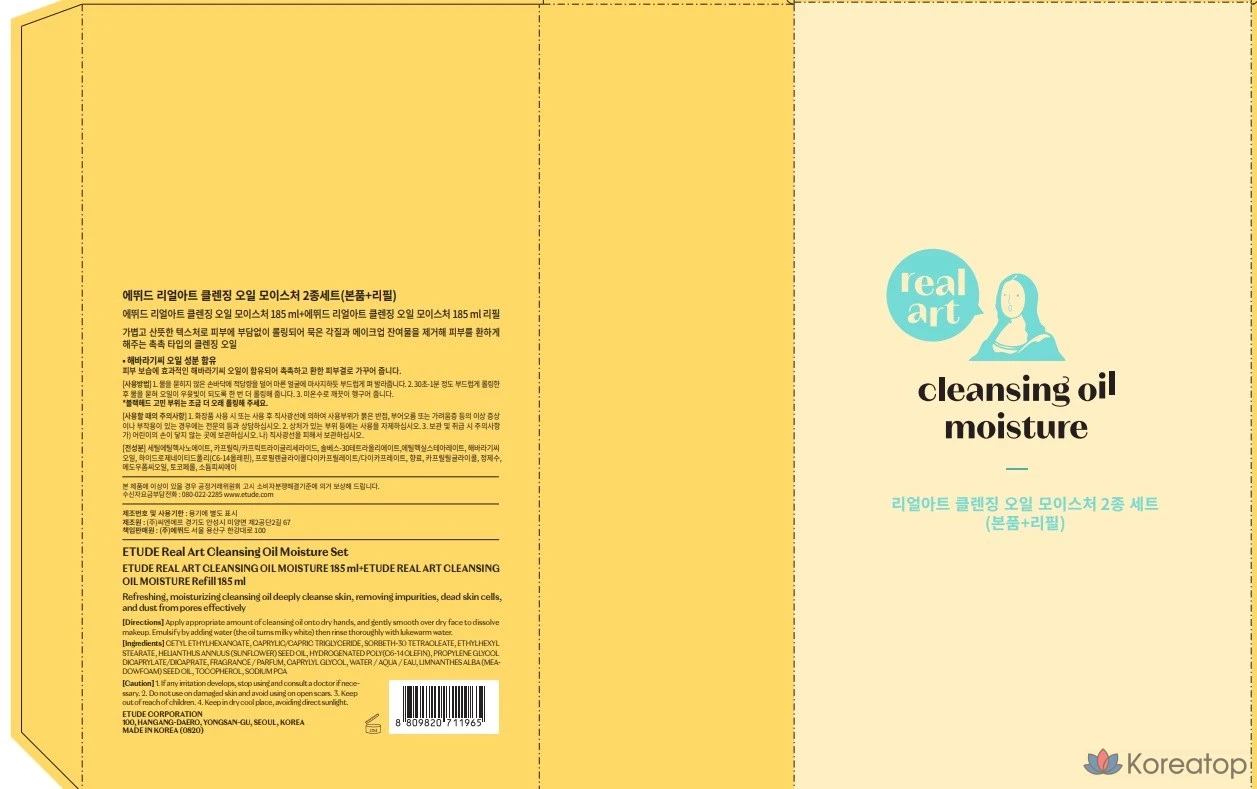 Набор Etude House Real Art Cleansing Oil Moisture (185 мл + сменный блок 185 мл), 1 шт.