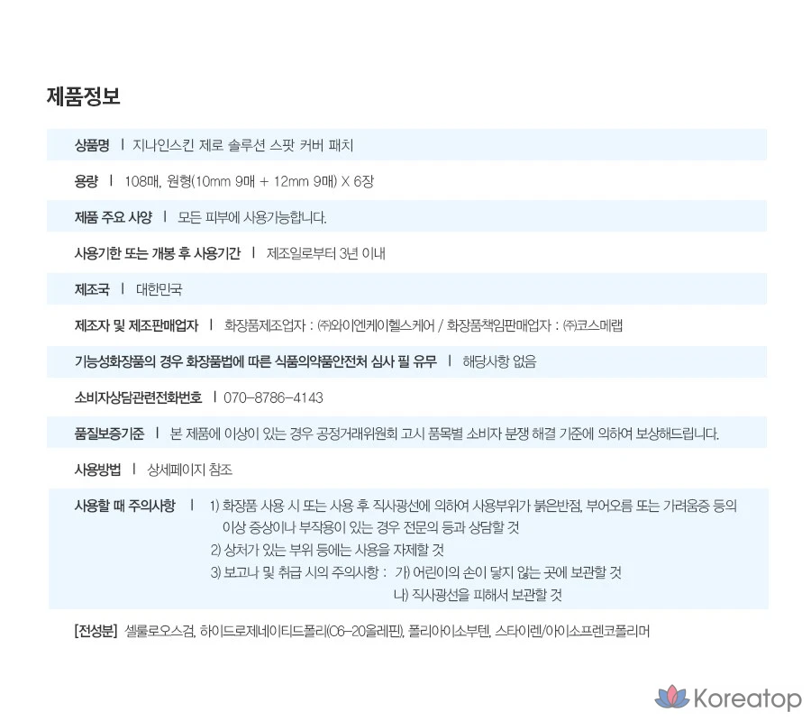 Патчи для тонусного нанесения Gina Skin Zero Solution, 1 упаковка, 108 штук.