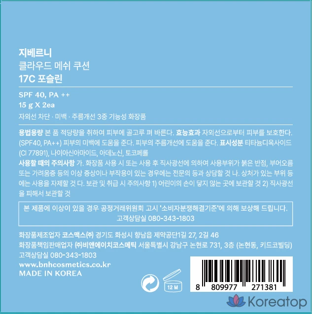 Набор Giverny Cloud Mesh Cushion 15 г + сменный блок 15 г, 1 шт., фарфор 17C.