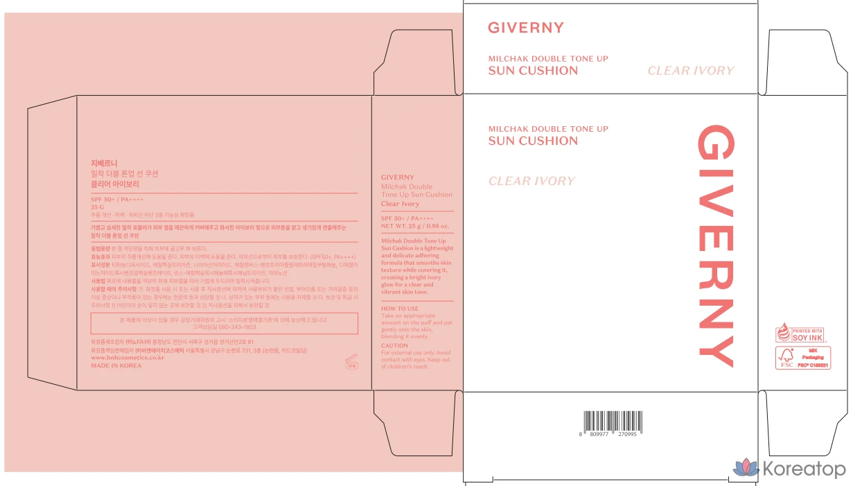 Солнцезащитный крем-кушон Giverny Double Tone-Up Clear Sun Cushion Ivory SPF50+ PA++++, 1 шт., 25 г