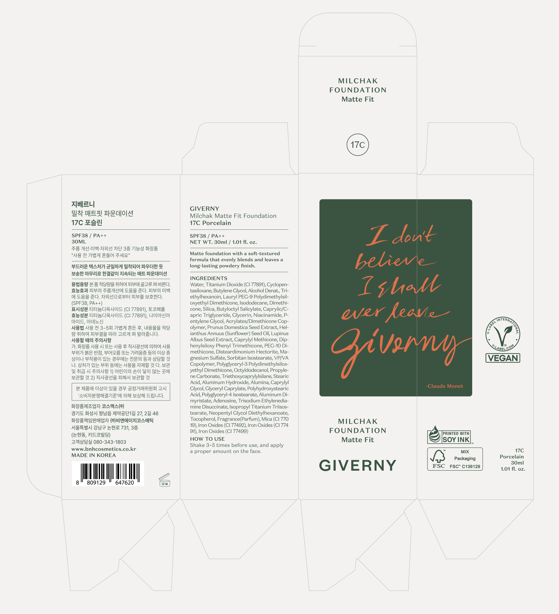 Тональный крем Giverny Close-Fit Matte Foundation, 30 мл, 1 шт., 23. Средний бежевый