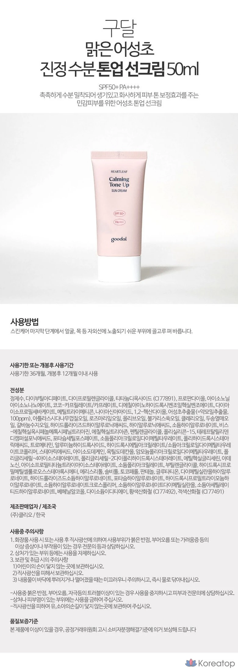 Успокаивающий увлажняющий солнцезащитный крем Goodal Clear Eoseongcho, 1 шт., 50 мл