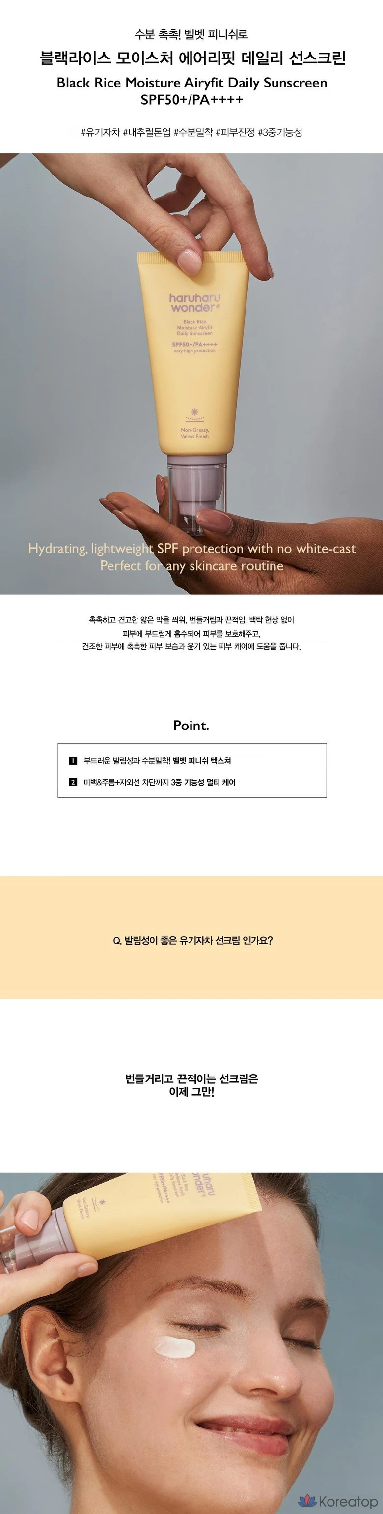 Солнцезащитный крем Haru Haru Wonder Black Rice Moisture Airy Fit Daily Sunscreen, 1 шт., 50 мл