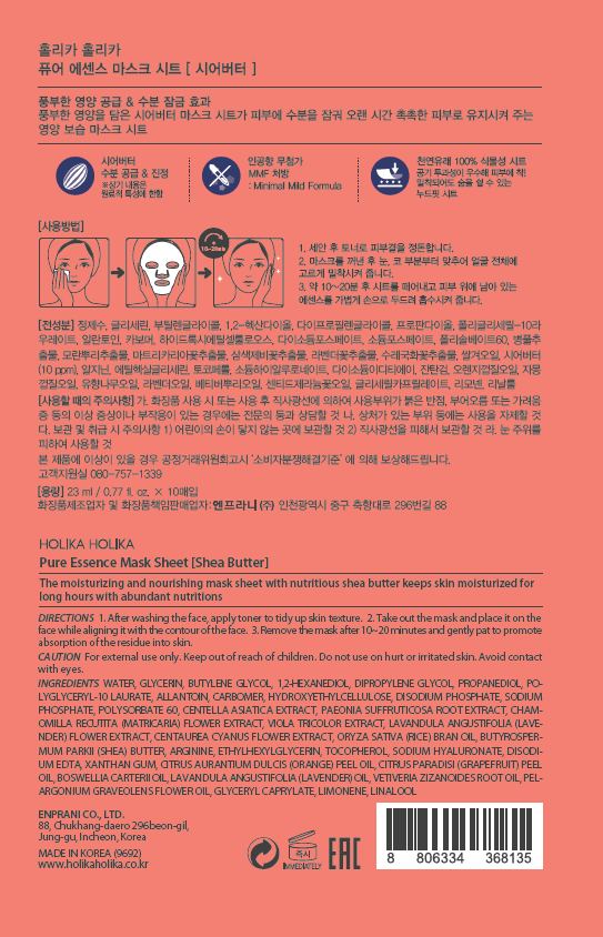 Holika Holika Pure Essence Тканевая маска с маслом ши, 10 штук, 1 шт.