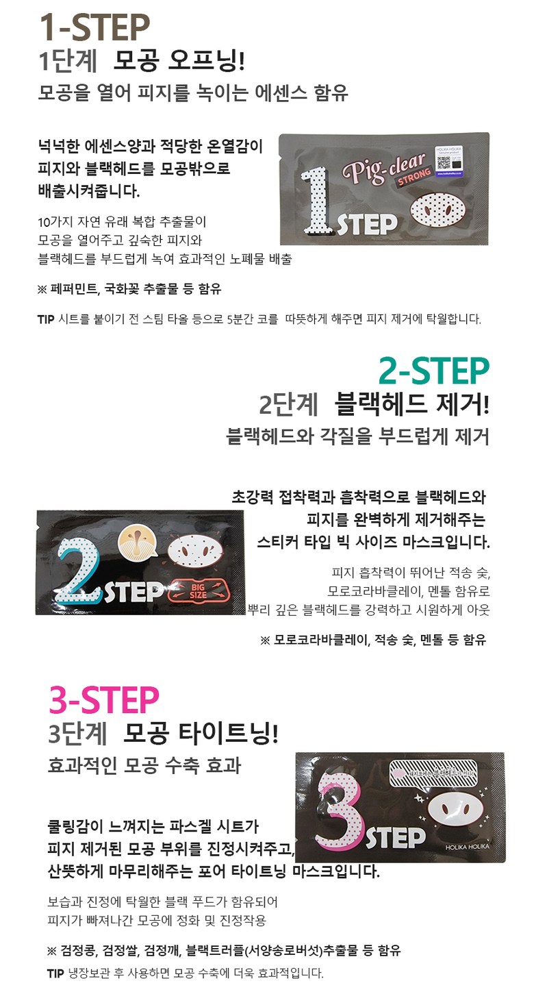 Набор для удаления черных точек Holika Holika Pig Clear Blackhead Kit 3-STEP Strong (для носа), 1 шт.