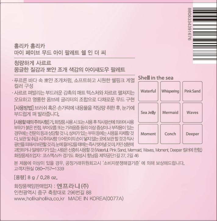 Палетка теней для век My Favorite Mood Eye Palette, 10 цветов, Holika Holika, 07 Shell in the Sea, 1 шт.