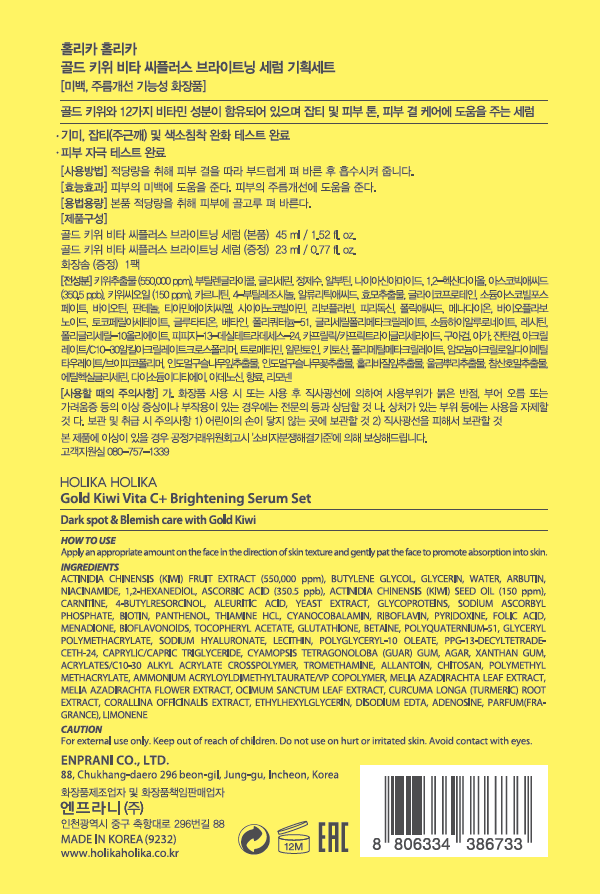 Holika Holika Gold Kiwi Vita C Plus Brightening Serum, 3 предмета, 1 шт.