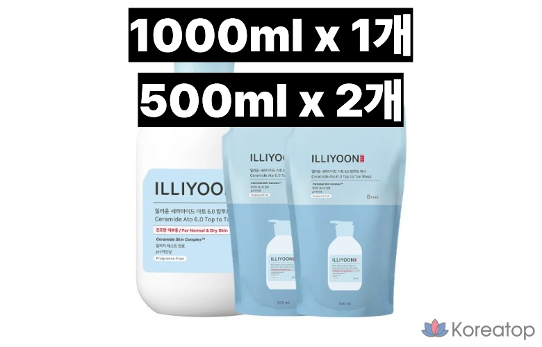 Гель для умывания Illiyoon Ceramide Ato60 для всего тела, 1000 мл, 2 сменных блока, 500 мл