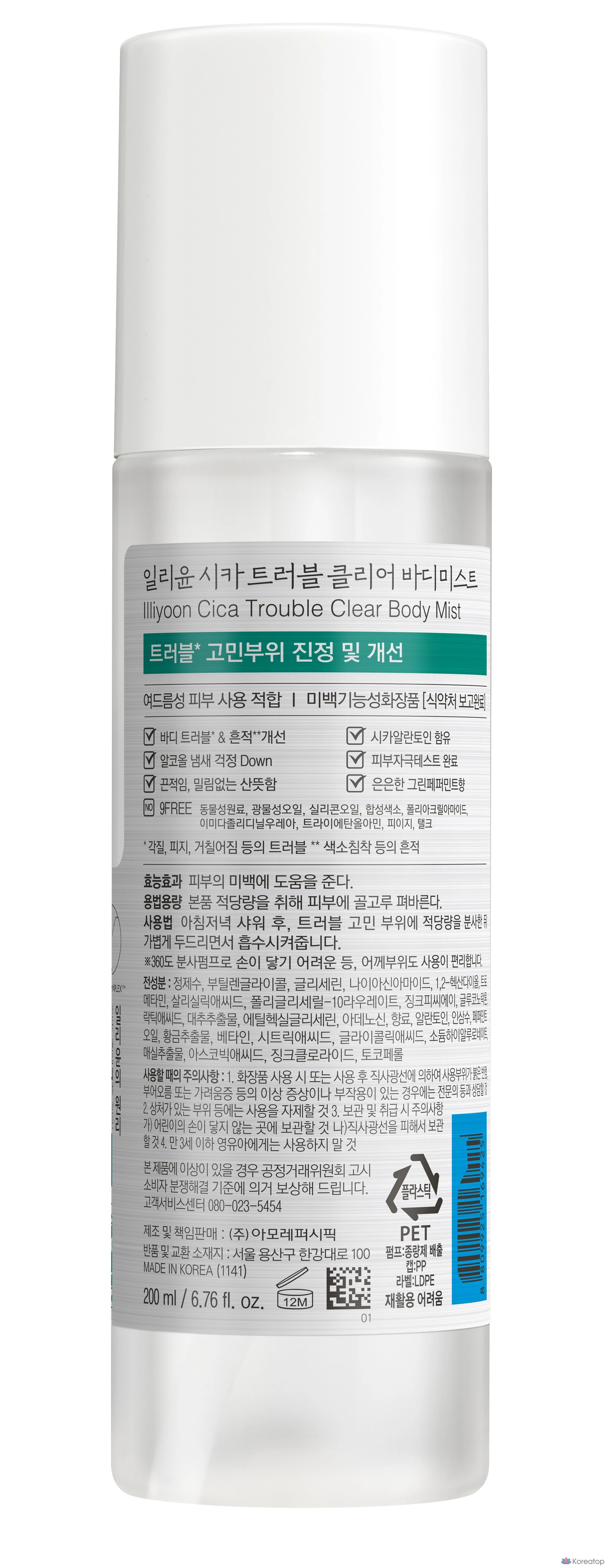 Illiyoon AC Cica Clear Body Mist, аромат зеленой мяты, 200 мл, 1 шт.