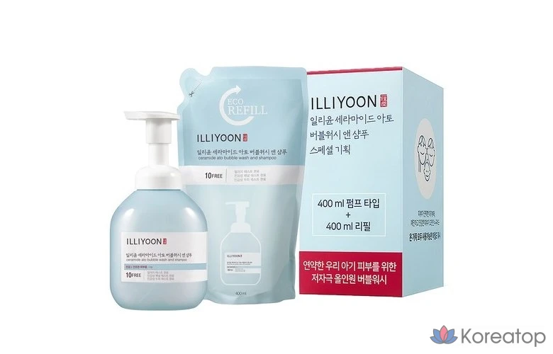Illiyoon Ceramide Ato Bubble Wash & Shampoo 400 мл + сменный блок 400 мл, 1 комплект