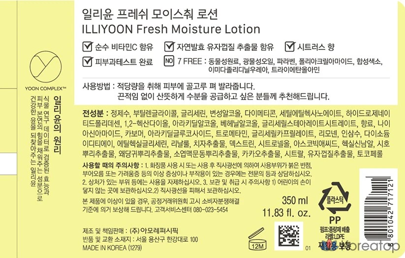 Увлажняющий лосьон Illiyoon Fresh с цитрусовым ароматом, 350 мл, 1 шт.