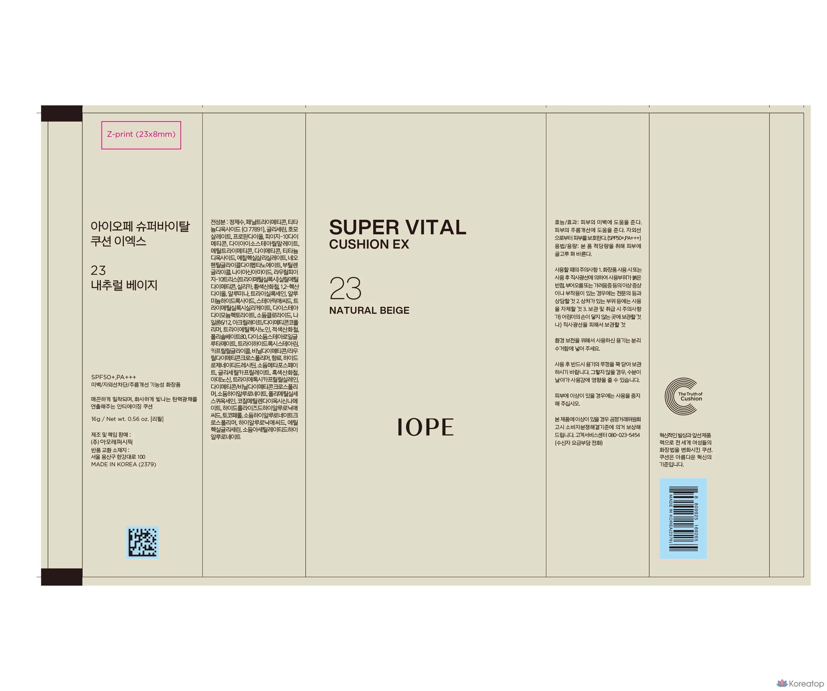 Сменный блок тонального крема IOPE Super Vital EX Cushion Foundation, 16 г, 21 светло-бежевый, 1 шт.