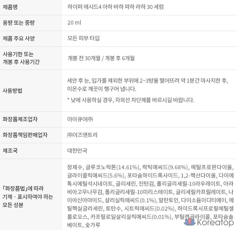 Isntree Hyper Acid 4 AHA BHA PHA RHA Сыворотка, 20 мл, 1 шт.