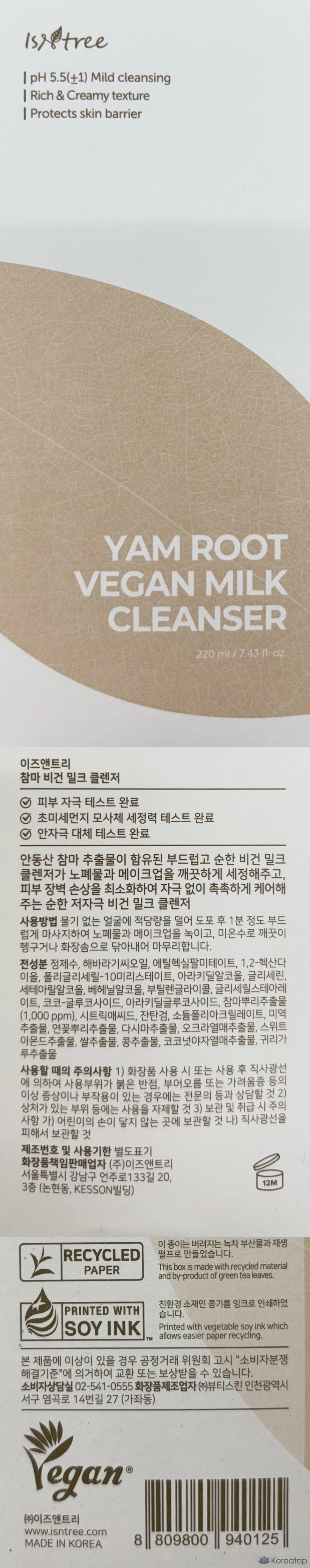 Очищающее молочко из ямса Isntree, 220 мл, 1 шт.