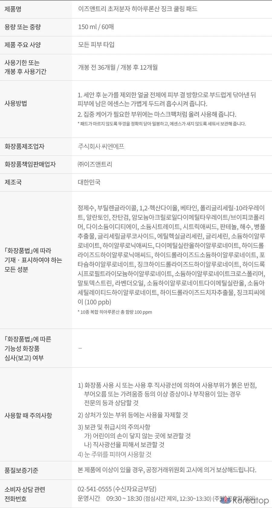 Охлаждающая подушечка Isntree с ультранизкомолекулярной гиалуроновой кислотой и цинком, 150 мл, 60 листов, 1 шт.