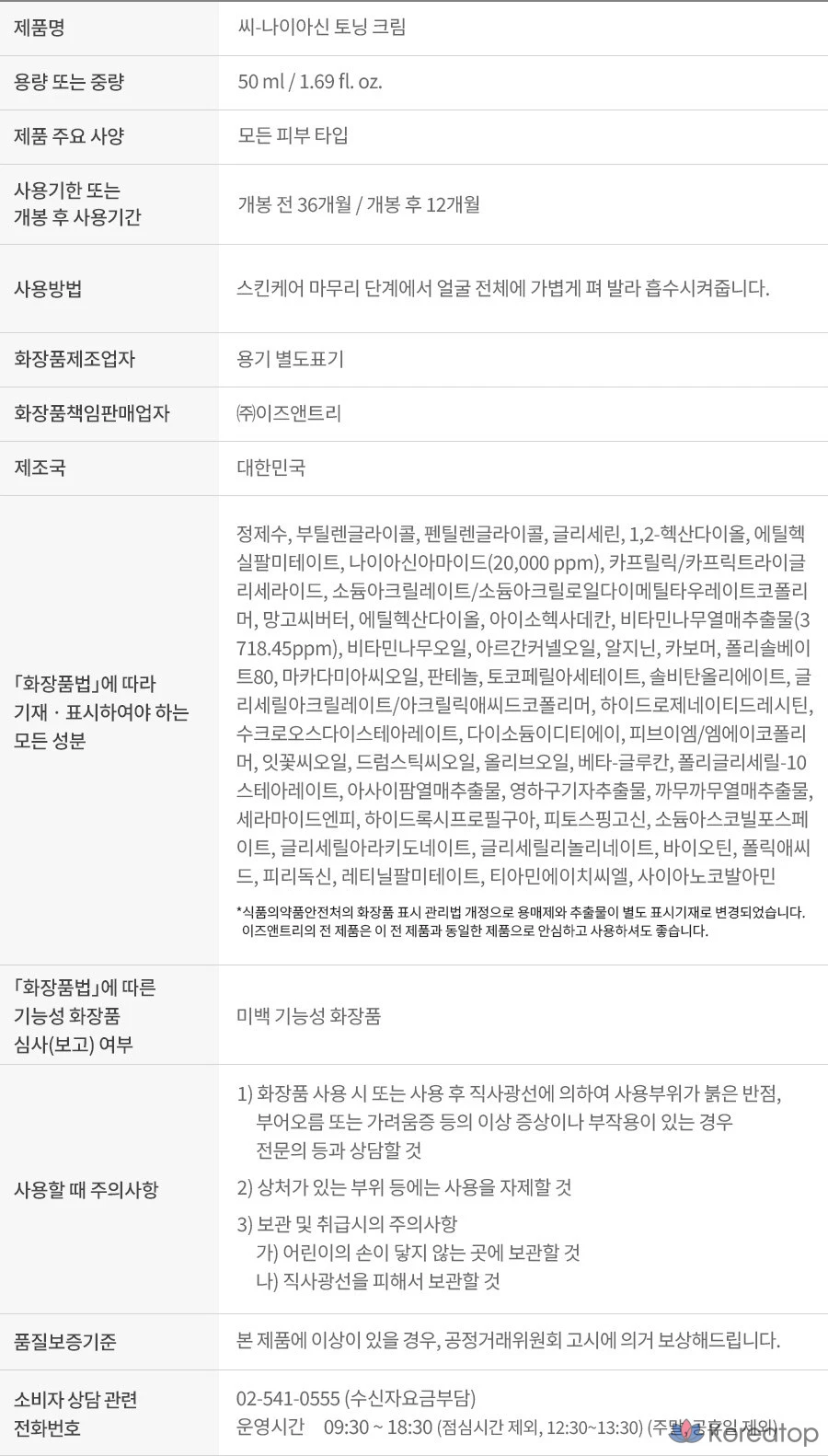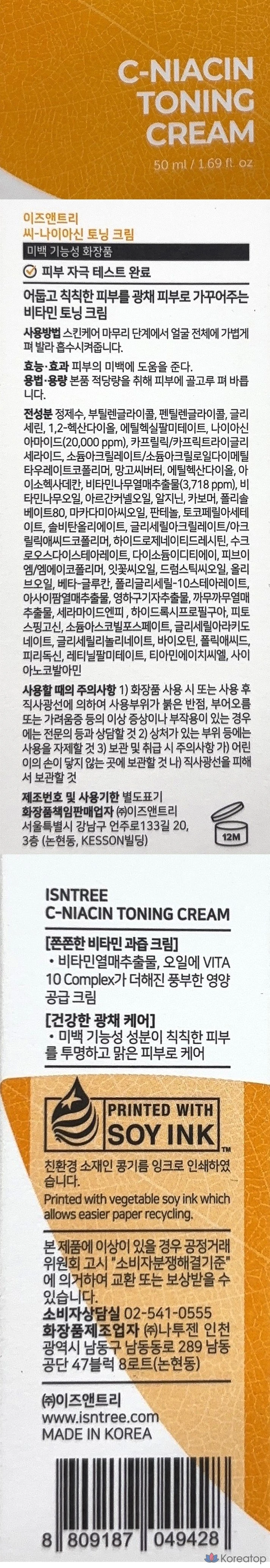 Тонизирующий крем Isntree C-Niacin, 50 мл, 1 шт.