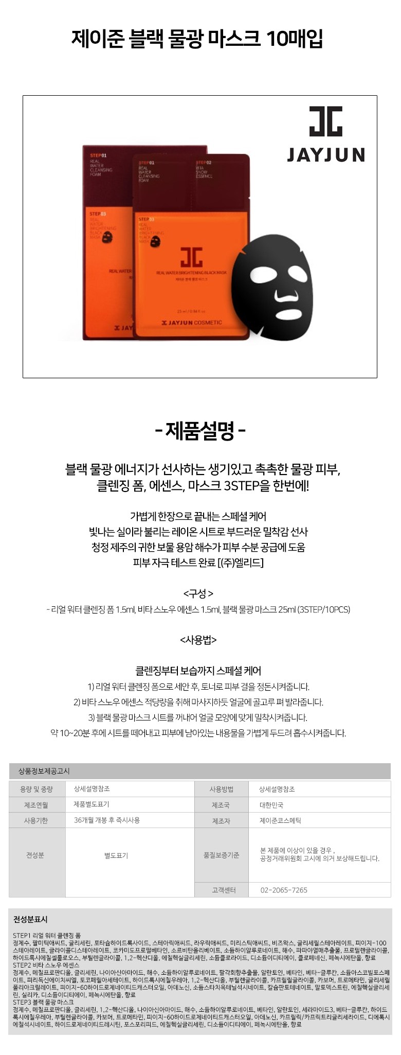 Маска для лица Jayjun Black Water Glow Mask Sheet, 1 упаковка, 1 шт.