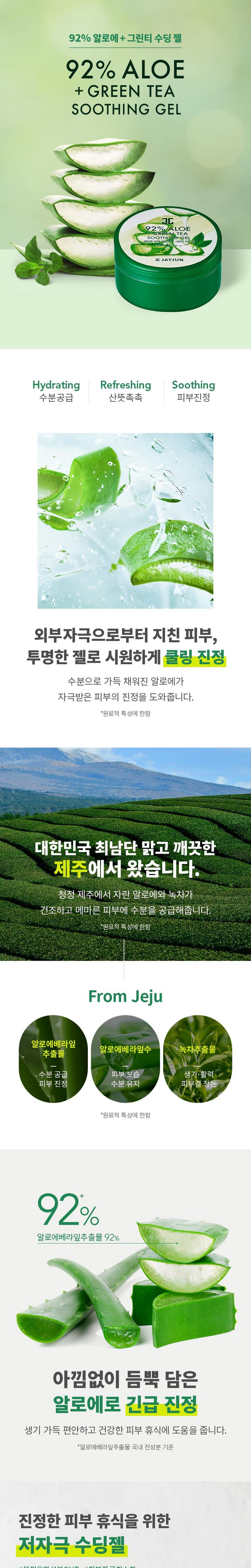 Успокаивающий гель с 92% алоэ вера и зеленым чаем, 1 шт., 300 мл