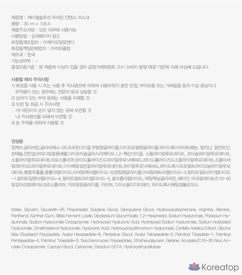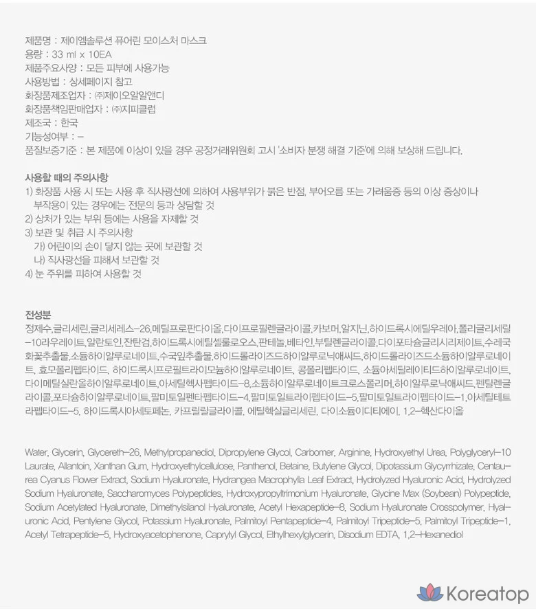 Набор из 4 масок JM Solution Purerin: успокаивающие, увлажняющие и восстанавливающие, 1 набор, 40 листов