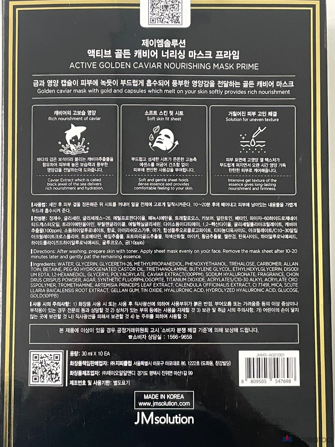 JM Solution Active Golden Caviar Nourishing Mask, 10 листов, интенсивное увлажнение, интенсивное питание, уход за огрубевшей кожей, 30 мл, 1 упаковка