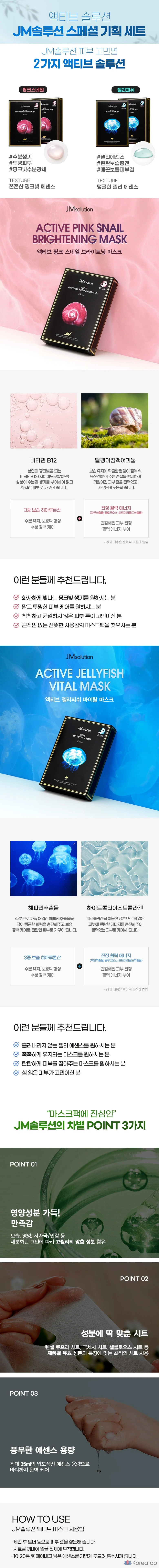 Набор из 10 масок JM Solution Active Pink Snail Mask + 10 масок JM Solution Jelly Fish Mask, 10 шт.