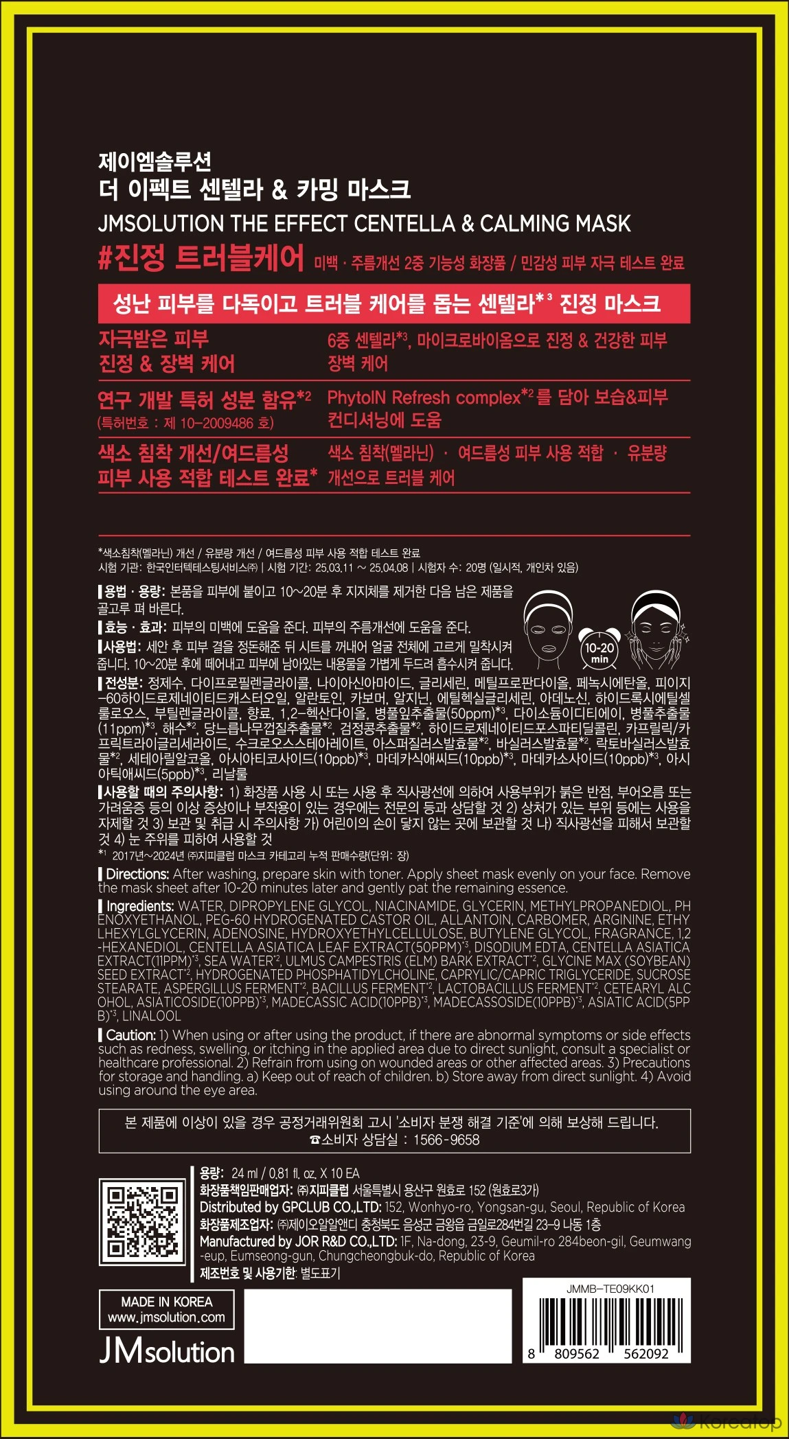 Набор из 10 успокаивающих масок JM Solution The Effect с экстрактом центеллы.