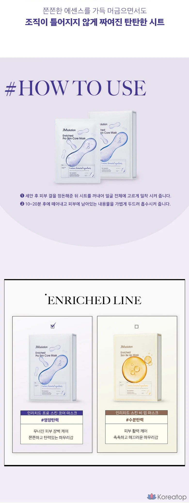 Набор из 2 масок JM Solution Enriched Mask (Skin Be Up & Pro Skin Core), 1 набор, 20 штук.