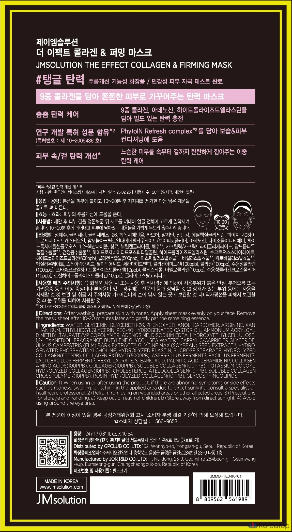 Набор коллагеновых и укрепляющих масок JM Solution The Effect, 1 упаковка, 10 листов.