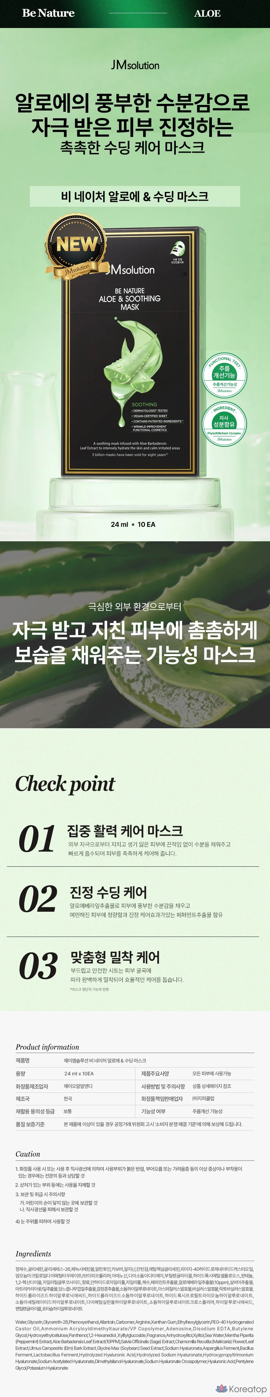 Набор успокаивающих масок с алоэ вера JM Solution Be Nature, 1 упаковка, 10 штук.