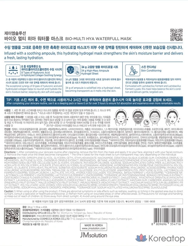 Набор масок JM Solution Bio Multi Hia Waterful Mask Pack 34 г, 1 шт., 4 упаковки.
