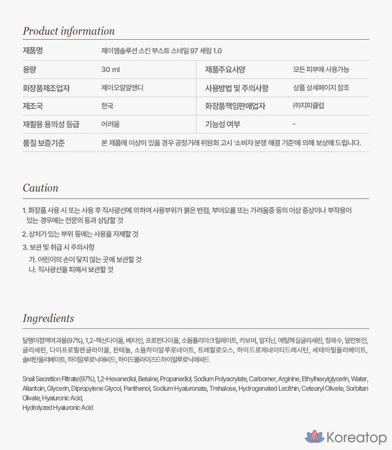 Сыворотка для лица JM Solution Skin Boost Snail 97, 30 мл, 1 шт.