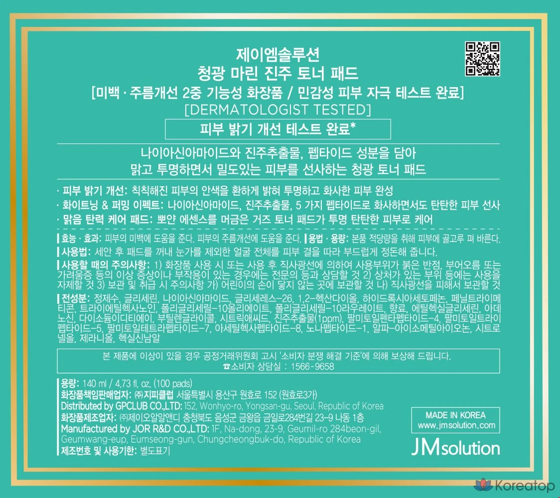 Тоник-подушечки JM Solution Cheonggwang Marine Pearl Glow, 140 мл, 1 шт., 100 листов.