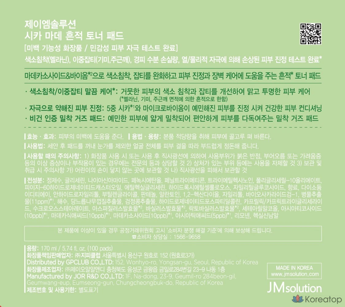 Тонизирующие подушечки JM Solution Cica Made Trace для успокоения кожи, 170 мл, 100 листов, 1 шт.