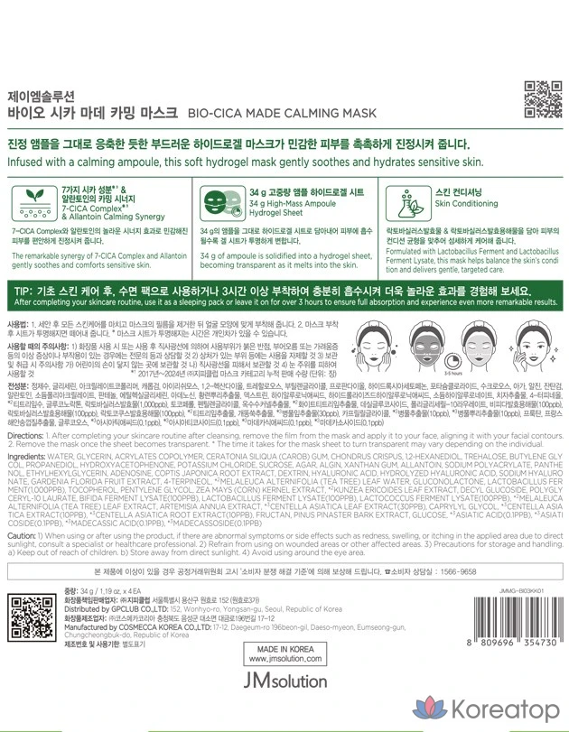Успокаивающая маска для лица JM Solution Bio Cica Made, 34 г, 1 упаковка, 4 штуки.